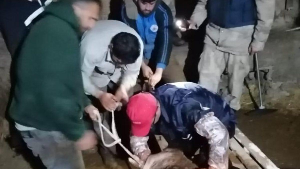 Sivas’ın Zara ilçesinde gebe inek, karla kaplı köy yolunun İl Özel İdaresi ekipleri tarafından açılmasıyla jandarma ekiplerinin yardımıyla veteriner tarafından doğum yaptırıldı.