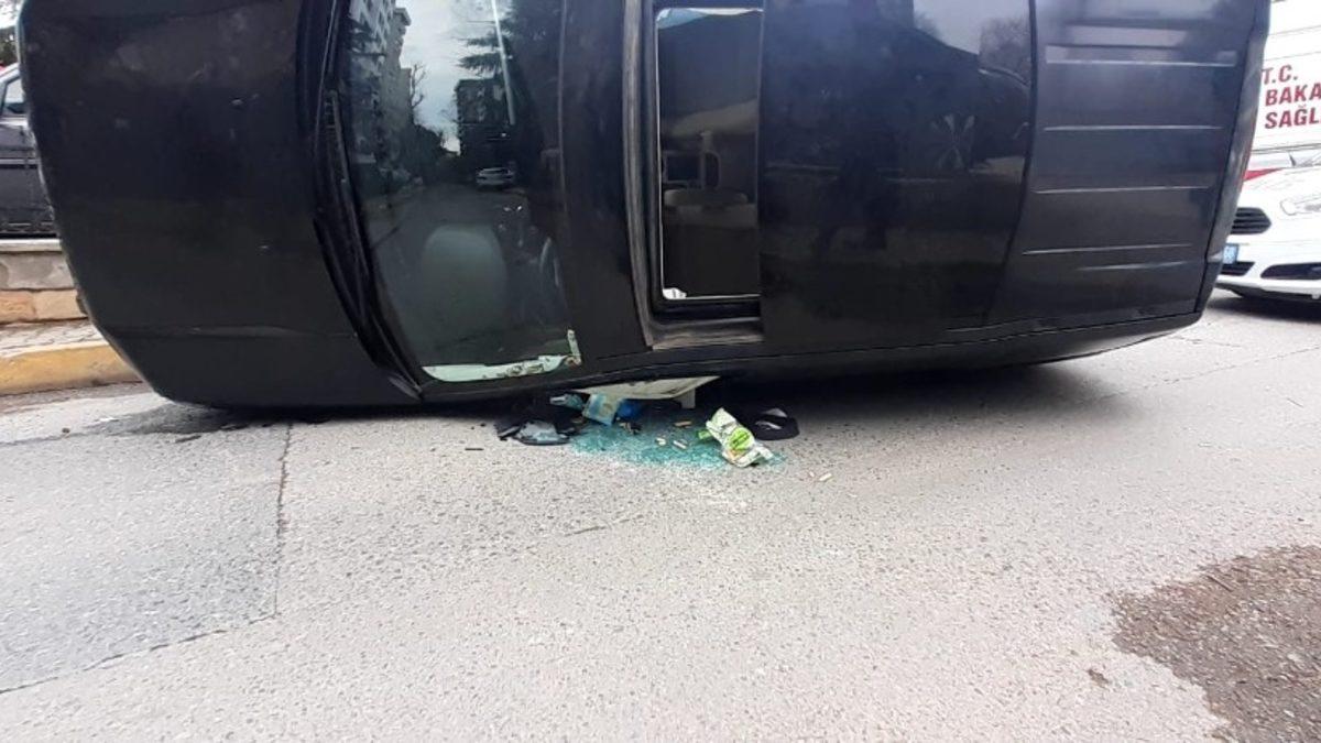 Kadıköy’de lüks cip yan yattı