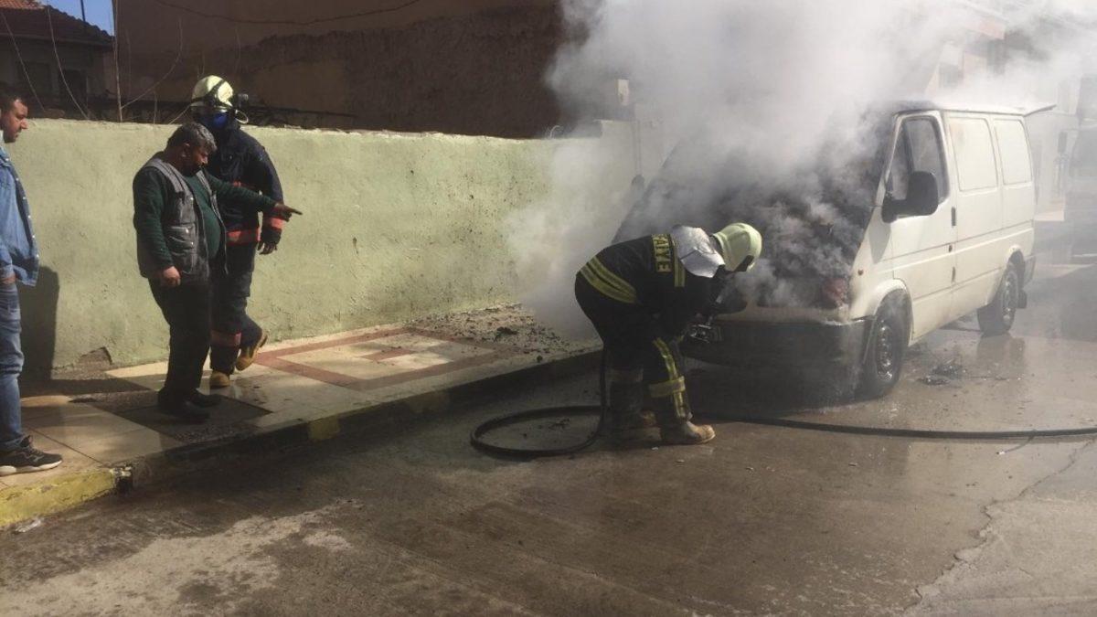 Manisa’nın Alaşehir ilçesinde park halindeki panelvan bir anda alevlere teslim oldu.