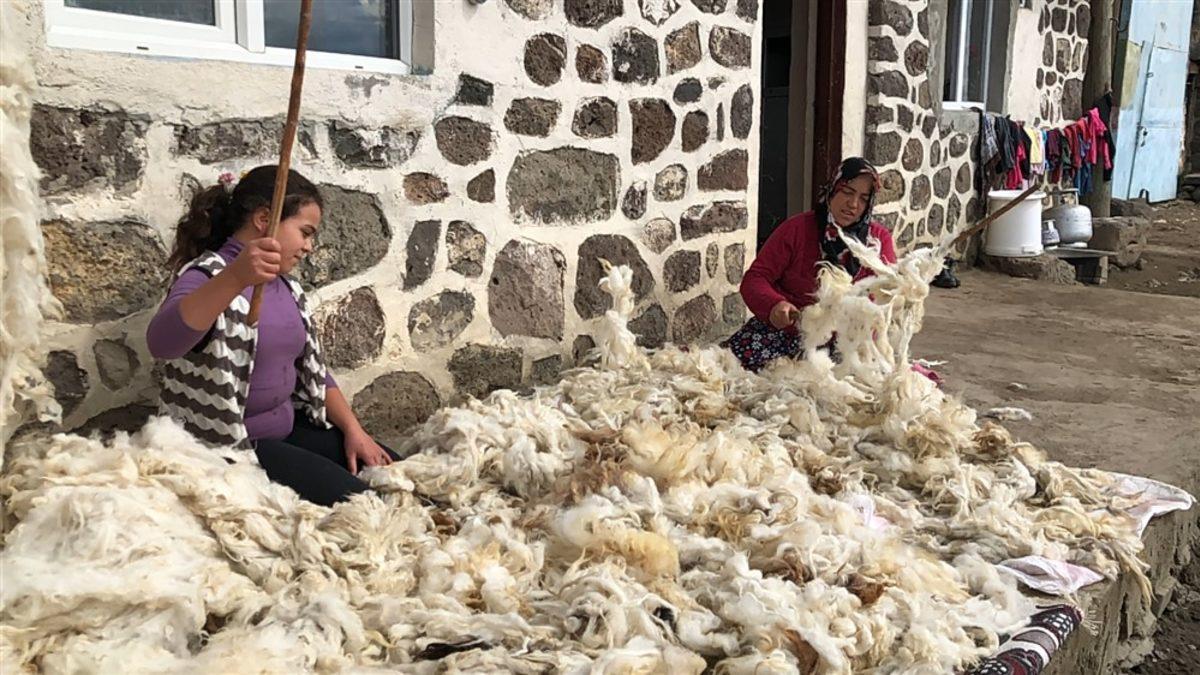 KARS'ın Arpaçay ilçesine bağlı Küçük Boğaz köyünün sakinleri, kış hazırlıklarını sürdürüyor.
