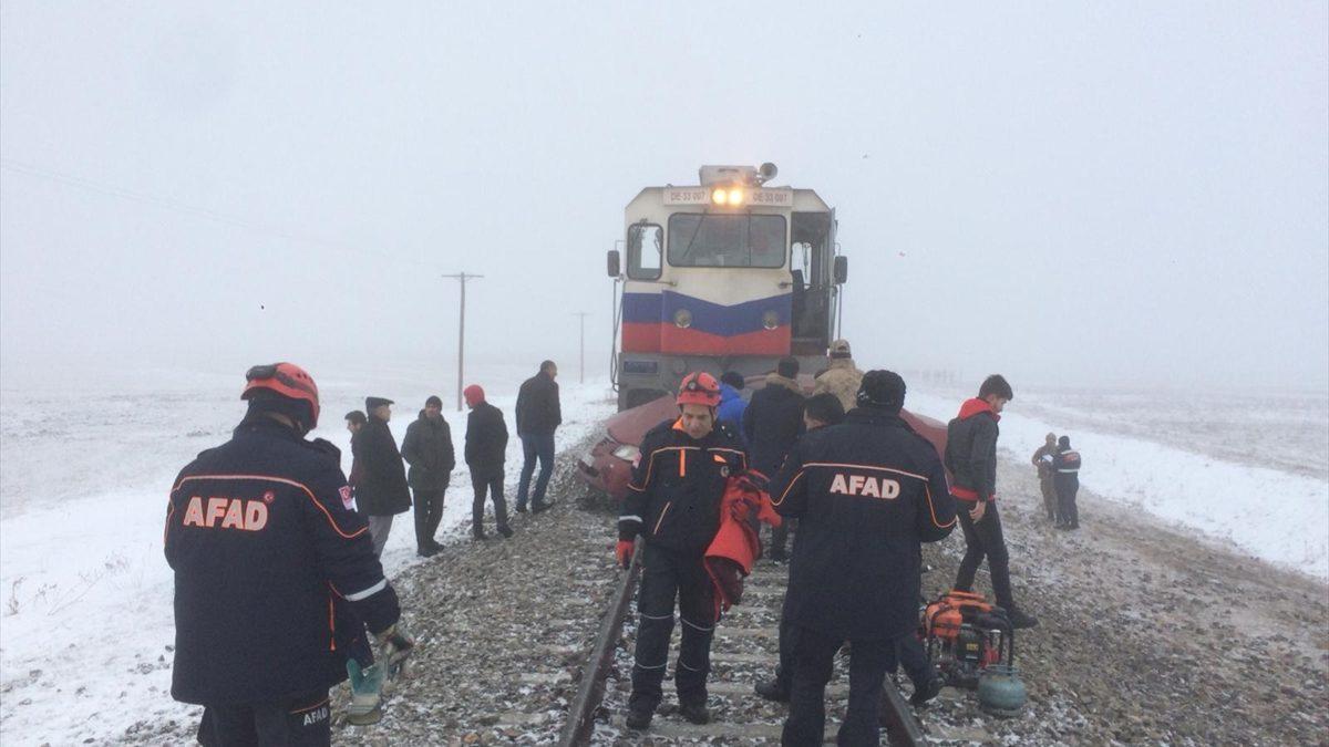 Kars'ın Selim ilçesinde, yük treninin hemzemin geçitte çarptığı otomobildeki 3 kişi yaşamını yitirdi.