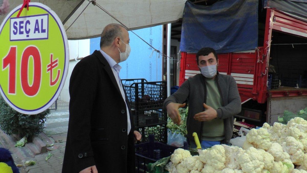 Kartal’da semt pazarında korona virüs önlemleri kapsamında denetim yapıldı.
