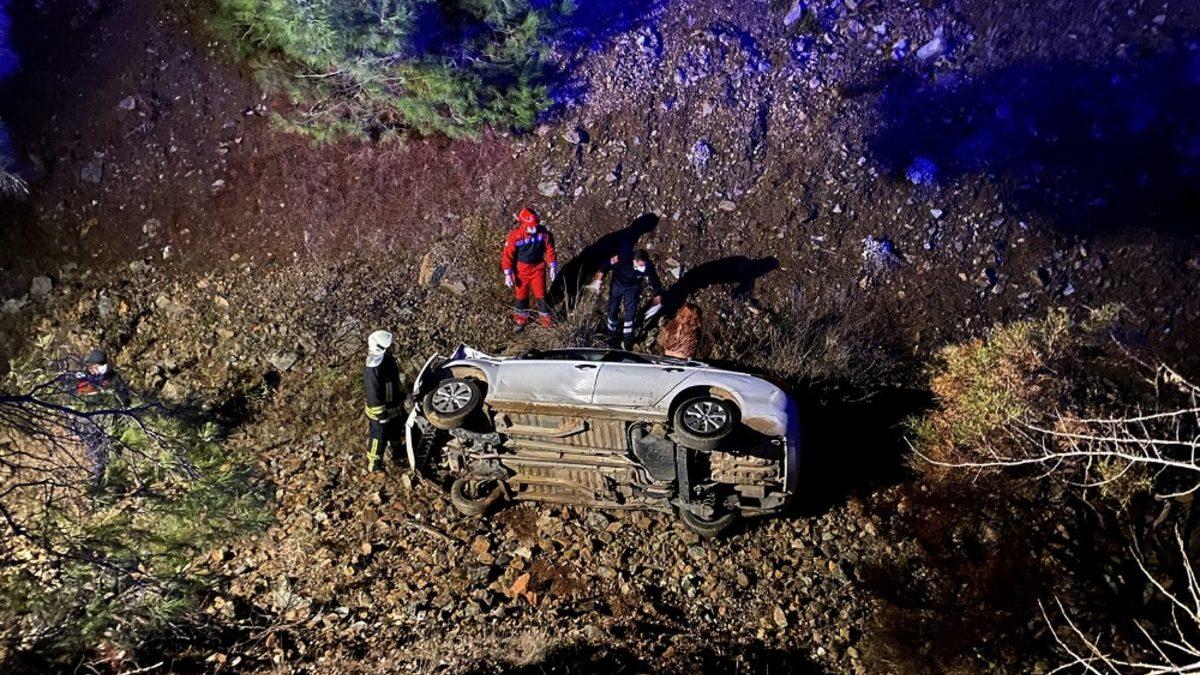 Muğla’nın Fethiye ilçesinde dereye devrilen otomobildeki iki kişi yaralandı.