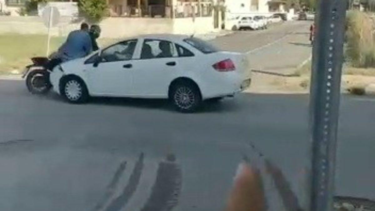 Hatay’ın İskenderun ilçesinde bir otomobil sürücüsü karıştığı kaza sonrası video çekerek olay yerini çekerken, o esnada başka bir otomobilin motosiklete çarptığı kaza anını görüntüledi.