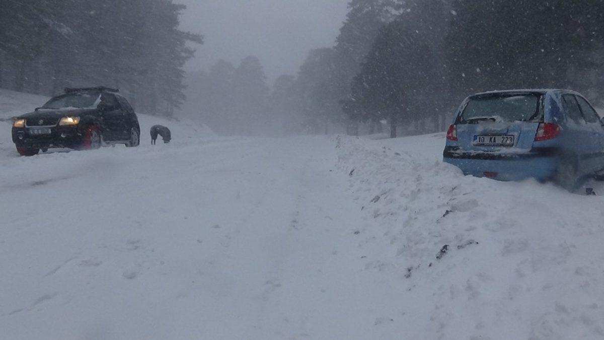 Balıkesir’in Edremit ilçesinin yüksek kesimleri ile Kazdağları’na kar yağdı.