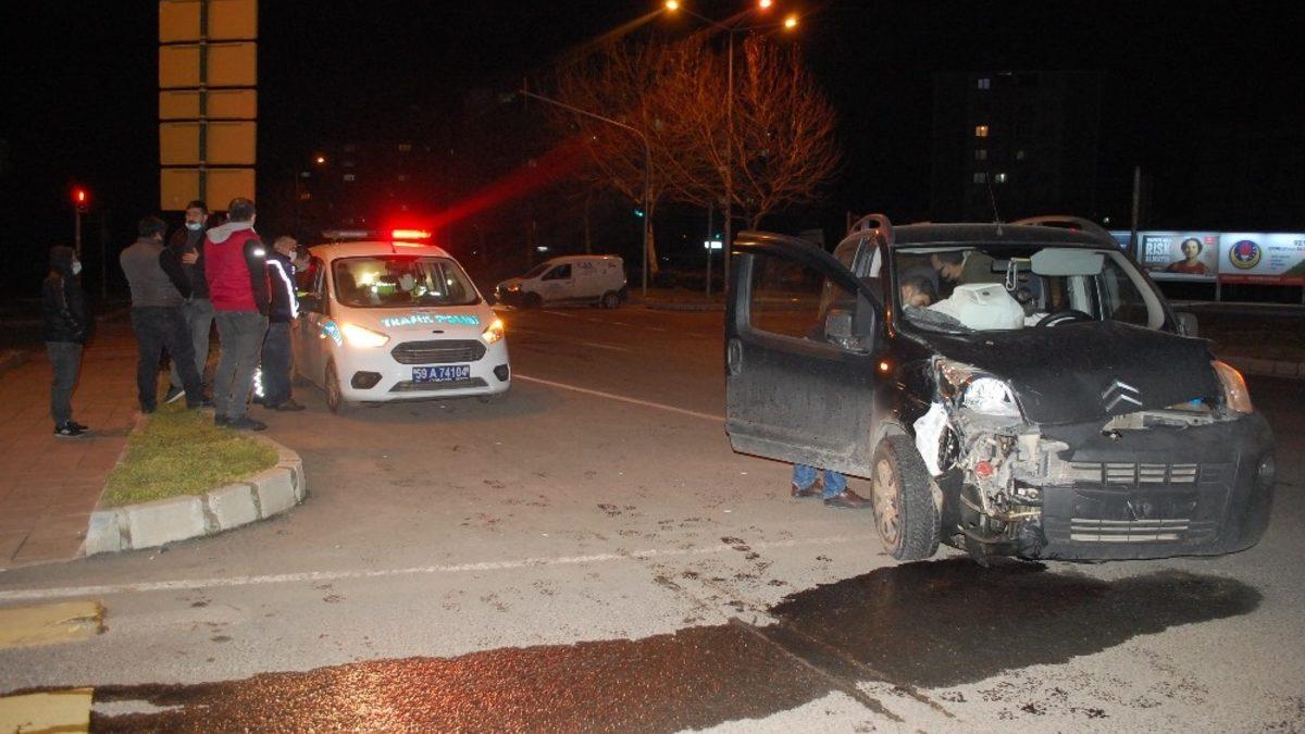 Tekirdağ’ın Çorlu ilçesinde kırmızı ışıkta geçtiği iddia edilen hafif ticari araç, başka bir hafif ticari araçla çarpıştı.