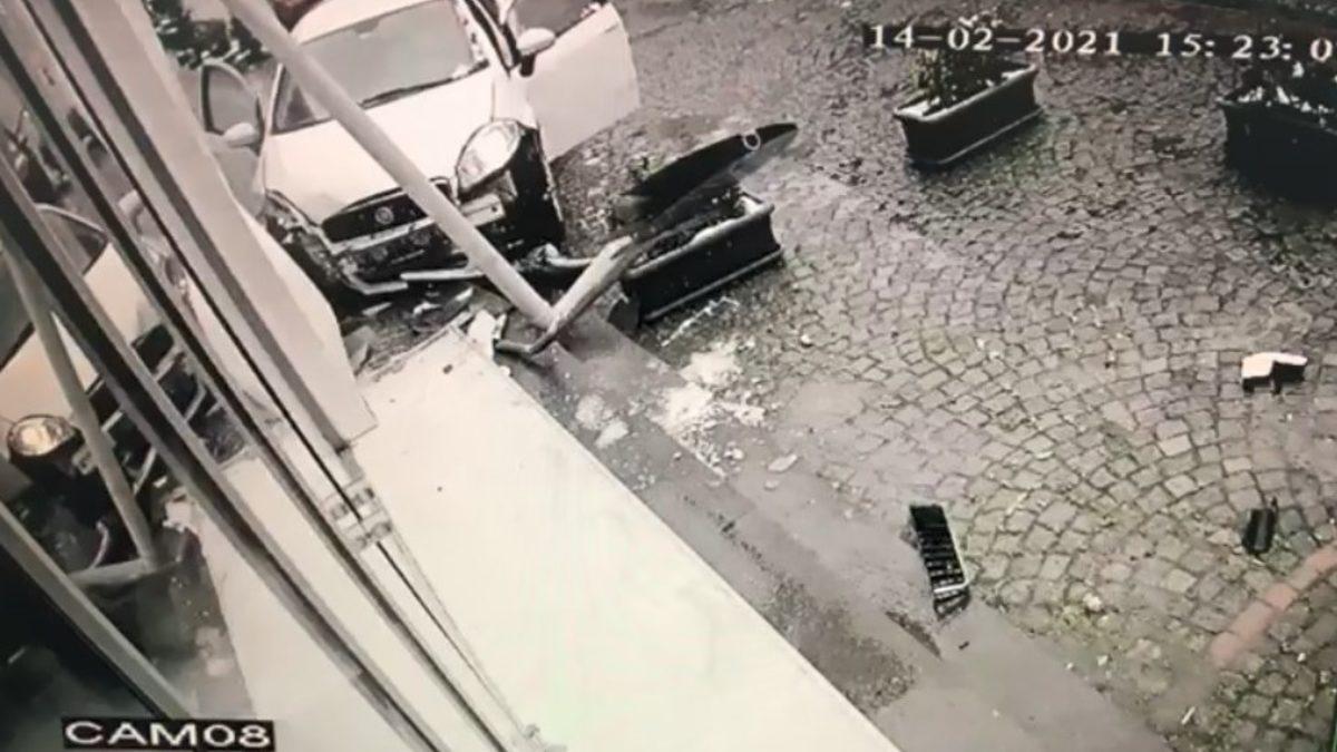 Kontrolden çıkan otomobil iş yerine böyle daldı