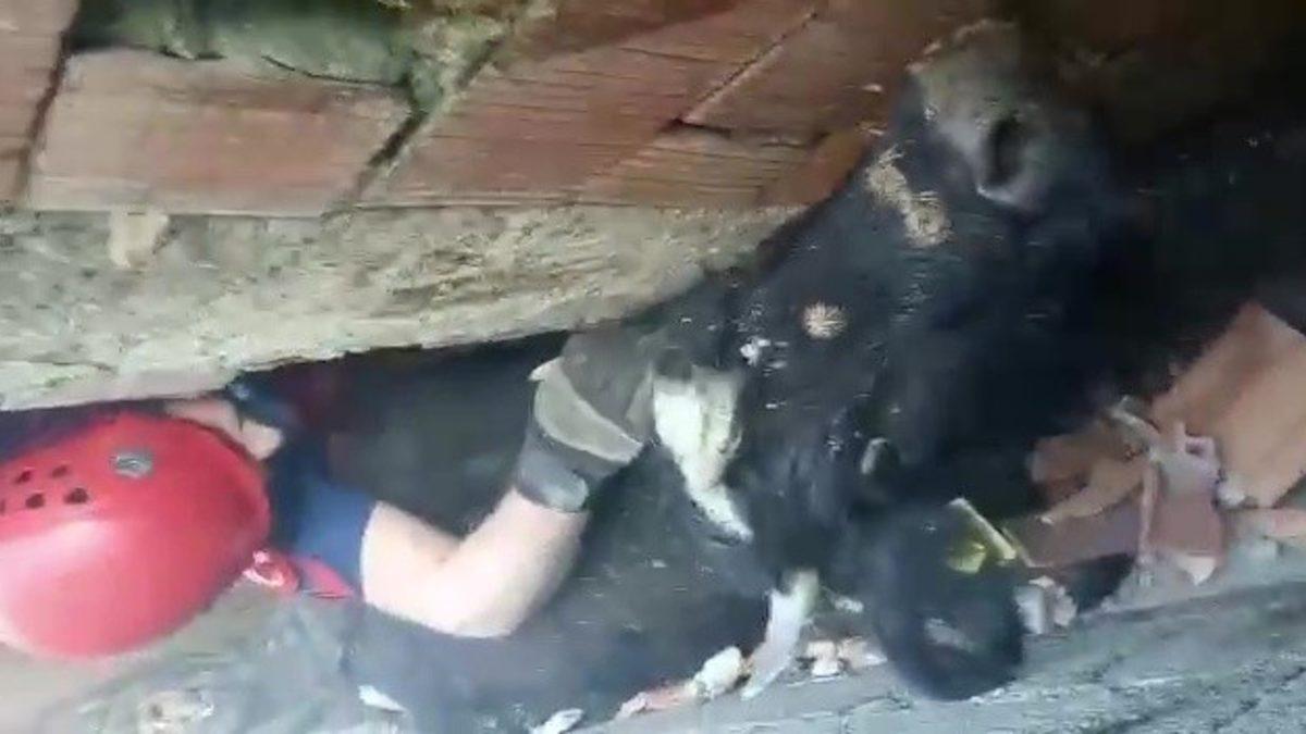 Köpeklerden kaçan inek iki duvar arasında sıkıştı