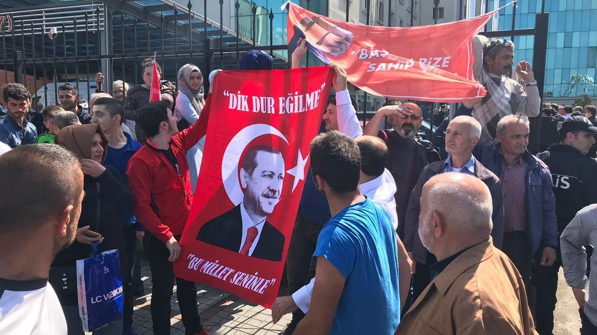 Rize Valiliği önündeki miting alanında Muharrem İnce’nin konuşması öncesinde ellerinde Cumhurbaşkanı Recep Tayyip Erdoğan’ın resimlerinin bulunduğu afişlerle alana gelen bir grup vatandaşı polis ekipleri uzaklaştırarak bir gerginlik çıkmasının önüne geçti.