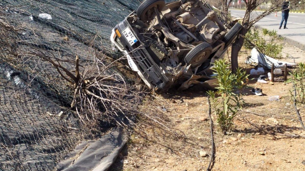 Gaziantep’te önündeki aracın fren yapması sonucu ani manevra yapan araç, savrulduktan sonra taklalar atarak menfeze uçtu.