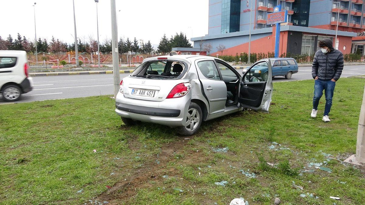 Zonguldak’ın Ereğli ilçesinde kamyonun çarptığı otomobil refüje çıkarak elektrik direğine çarptı, sürücü kazayı yara almadan atlattı.Kaza, ilçeye bağlı Gülüç beldesi Ereğli Akçakoca yolu üzerinde meydana geldi.