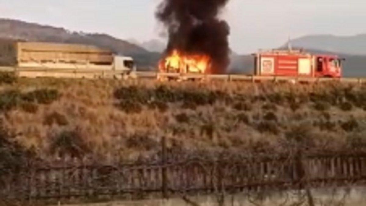 Hatay’ın Dörtyol ilçesinde seyir halindeki hafif ticari araç aniden alev alarak yandı.