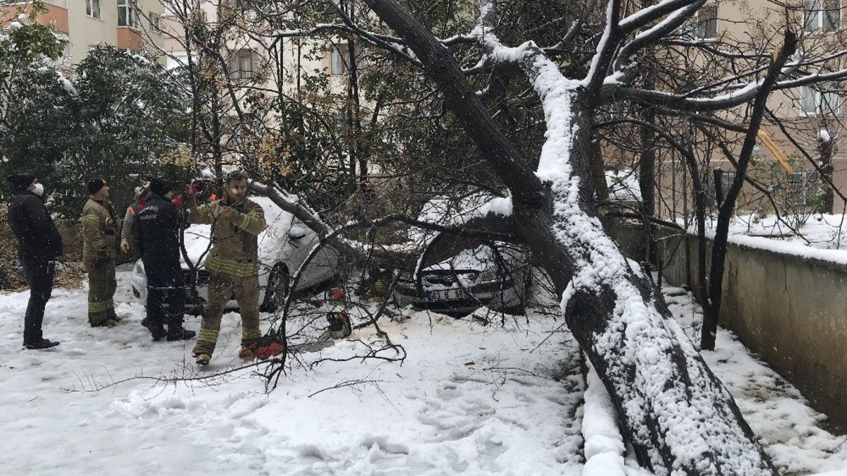 Ataşehir’de rüzgar ve kar yağışının etkisiyle bir binanın bahçesinde bulunan 30 yıllık tesbih ağacı bahçede park halinde bulunan 2 otomobilin üzerine devrildi. Araçlarda maddi hasar meydana gelirken, ağacın devrildiği anda otomobillerde kimsenin olmaması olası bir faciayı önledi.