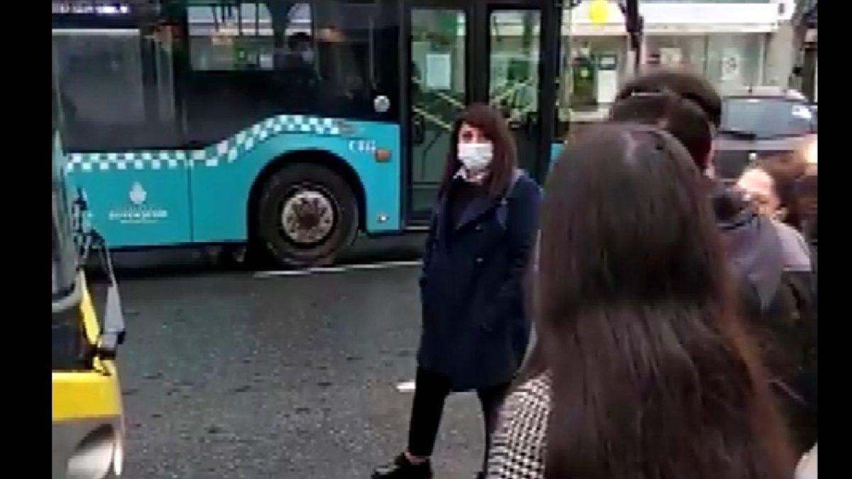 Sancaktepe’de yolcu kapasitesi dolan bir otobüs şoförü, aracın kapılarını açmayınca duraktaki vatandaşların tepkisiyle karşılaştı.