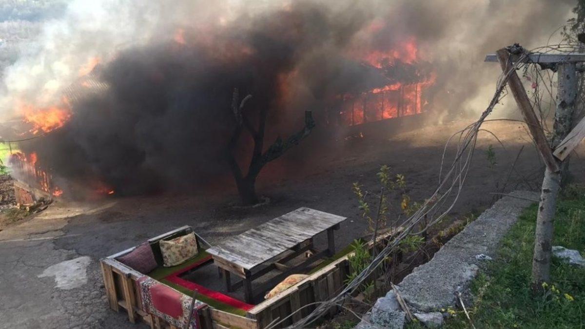 Kocaeli’nin Gölcük ilçesinde garaj kısmındaki traktörün alev alması sonucu içerisinde samanlık bulunan çiftlik evi tamamen yanarak kullanılamaz hale geldi.