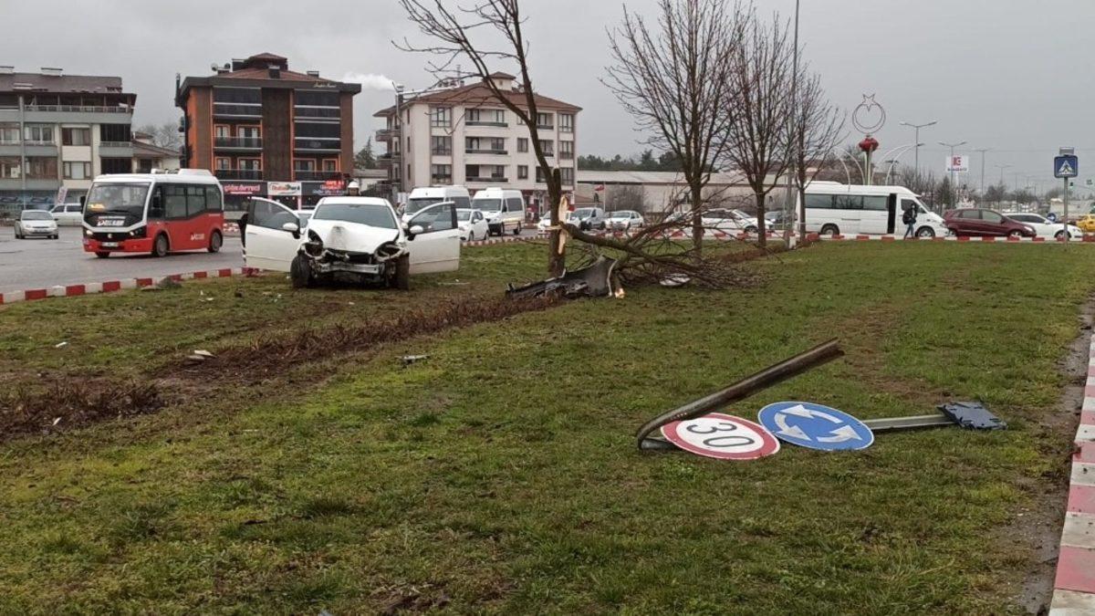 Düzce’de yağmur sebebiyle kayganlaşan yolda sürücüsünün direksiyon hakimiyetini kaybettiği otomobil refüje çıktı.Kaza, akşam saatlerinde Bahçeşehir bağlantı yolunda meydana geldi.