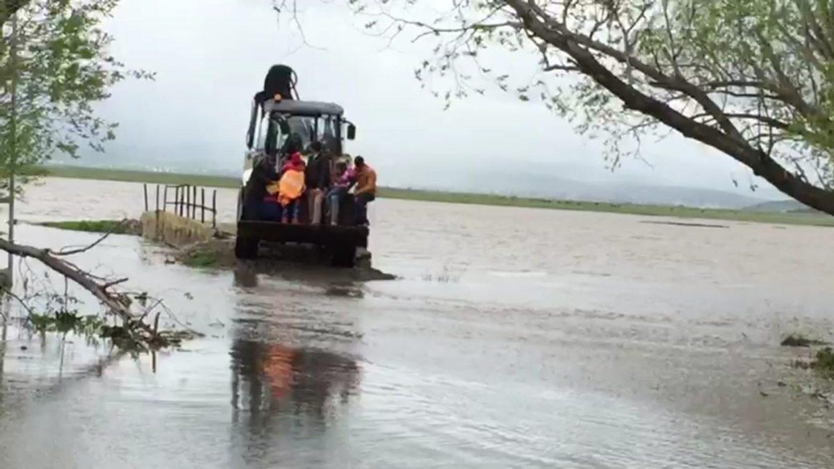 Su baskını altında kalan evlerde ki vatandaşlar, AFAD ekipleri tarafından kepçe yardımıyla kurtarıldı.