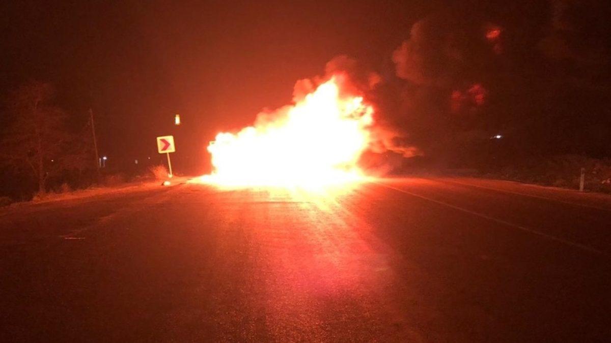 Kahramanmaraş’ın Afşin ilçesinde seyir halindeyken alev alarak yanan kamyonet demir yığınına döndü.