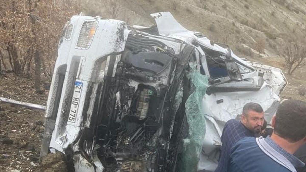Şırnak’ın Uludere ilçesine bağlı Ballı köyü mevkinde, sürücüsünün direksiyon hakimiyetini kaybettiği kömür yüklü tır şarampole yuvarlandı.
