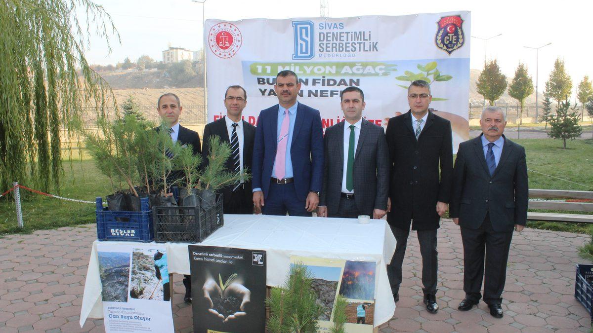 Uğur YİĞİT/SİVAS, (DHA)- SİVAS'ta denetimli serbestlikten yaralanan ve Açık Ceza İnfaz Kurumu'nda kalan hükümlüler, Tarım ve Orman Bakanlığı'nca başlatılan 'Geleceğe Nefes Ol' kampanyası kapsamında 300 çam fidanı dağıttı.