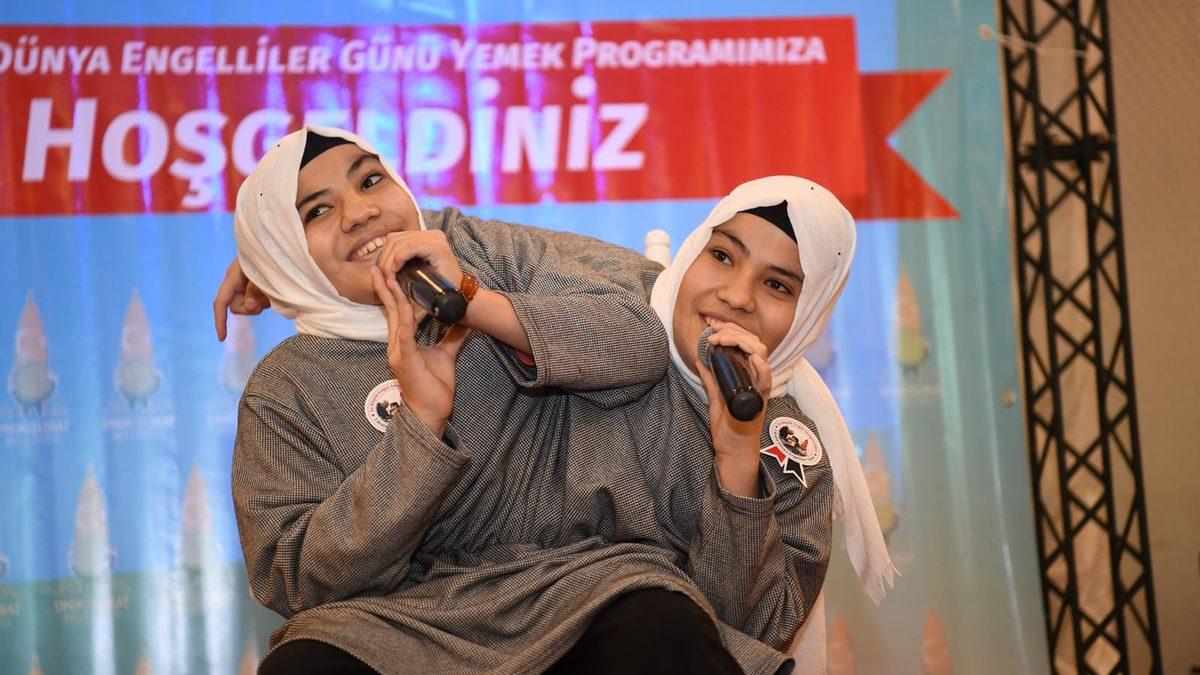 KAHRAMANMARAŞ'ta yaşayan siyam ikizleri Ayşe ve Sema Tanrıkulu, Onikişubat Belediyesi'nin 3 Aralık Dünya Engelliler Günü programına katıldı.