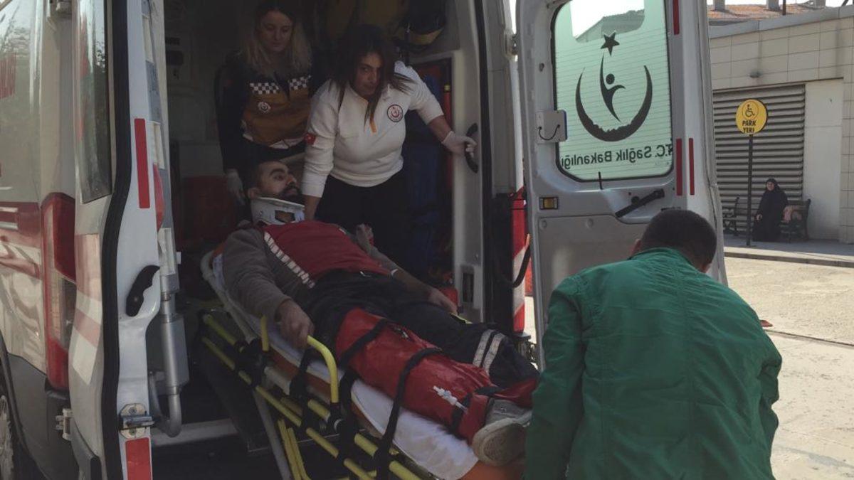 BURSA'nın İnegöl ilçesinde sokakta yürüyen Mustafa  Arslan (32), yol kenarına konulan sunta parçalarının üzerine devrilmesi sonucu yaralandı.
