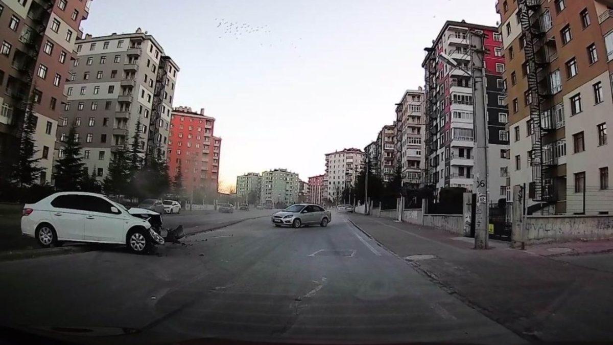 Konya’da sokaktan caddeye hızını düşürmeden çıkan bir otomobil, bu sırada seyir halindeki başka bir otomobile hızla çarptı.