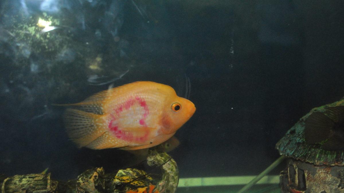 Ayhan ACAR/BARTIN, (DHA)- BARTIN'da bir İlkokul'un akvaryumunda bulunan 'papağan' cinsi süs balığının her iki tarafında kırmızı çizgilerle kalp şekli oluştu.