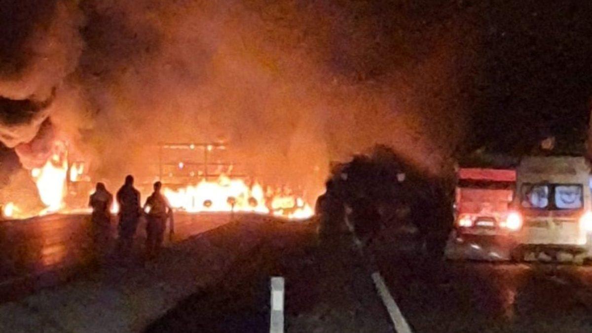 Kütahya-Gediz karayolunda kamyonete arkadan çarpan tır alev alev yandı.