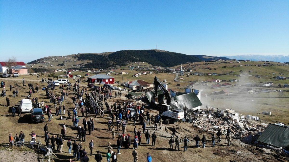 Trabzon’un Düzköy ilçesi Haçka Yaylası’nda kaçak yapılaşma ile mücadele kapsamında yıkımına karar verilen 5 villanın yıkımı tamamlandı.Düzköy ilçesi Haçka Yaylası’na dün geceden jandarma eşliğinde çıkan yıkım ekipleri yaylaya çıktıklarında durumu haber alan ve yaylaya gelen vatandaşların tepkisi ile karşılaştı.