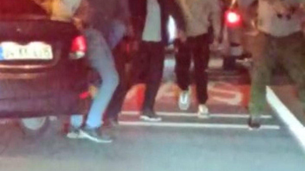 Trafiği tehlikeye düşüren kamyonet sürücüne dayak kamerada