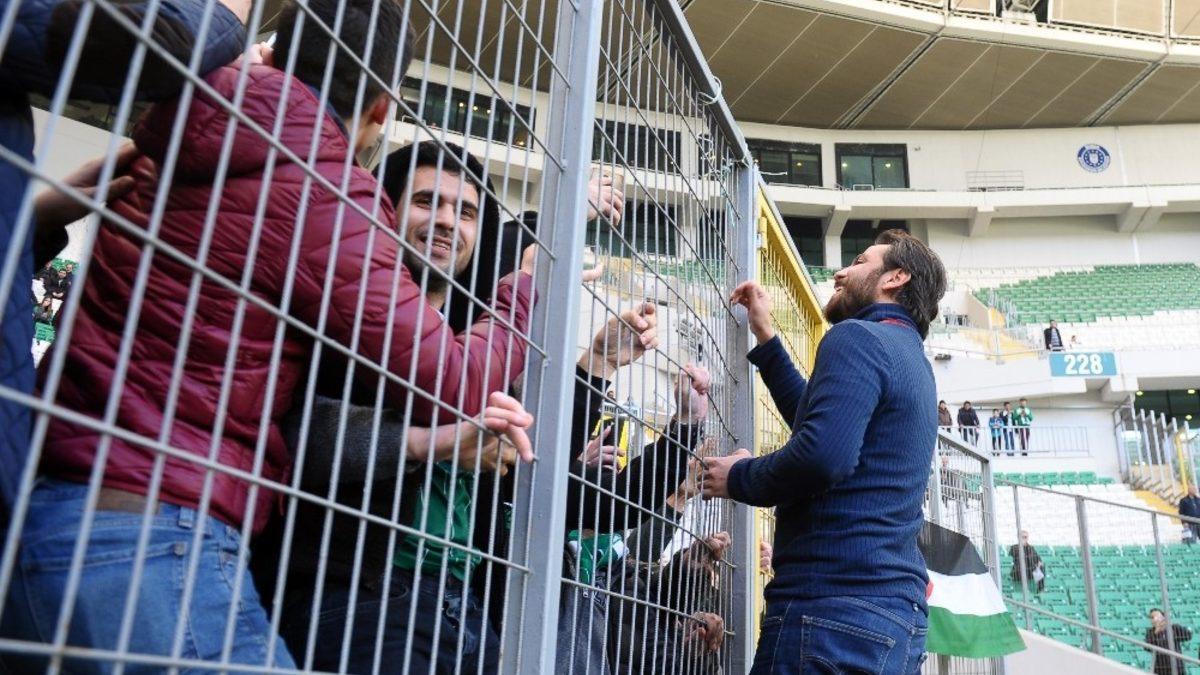 Süper Lig’in 22. haftasında Bursaspor, sahasında Evkur Yeni Malatyaspor ile karşılaşıyor. Önceki gün Özlüce Tesisleri’nde yeşil-beyazlı oyuncularla birlikte antrenmana çıkan Çukur dizisinin sevilen oyuncusu Erkan Kolçak Köstendil, Bursaspor’un Yeni Malatyaspor maçını da tribünden takip ediyor. Küçük yaş kategorilerinde kaleci olarak yeşil-beyazlı formayı giyen Köstendil’e maç öncesi taraftarlar da sevgi selinde bulundu. Üçlü çektiren Erkan Köstendil’e Bursasporlu taraftarlar da, ’Vartolu ölmedi kalbimizde yaşıyor’ tezahüratlarında bulundu.