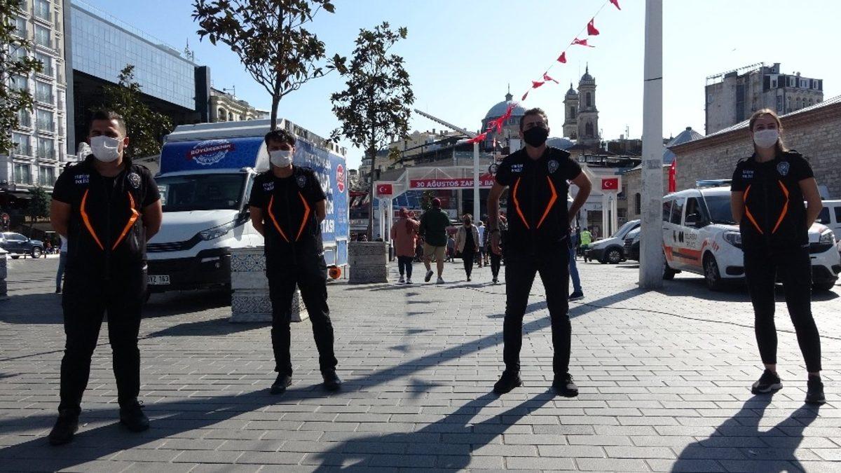 Taksim’de drone ile maske ve sosyal mesafe uyarısı yapıldı.