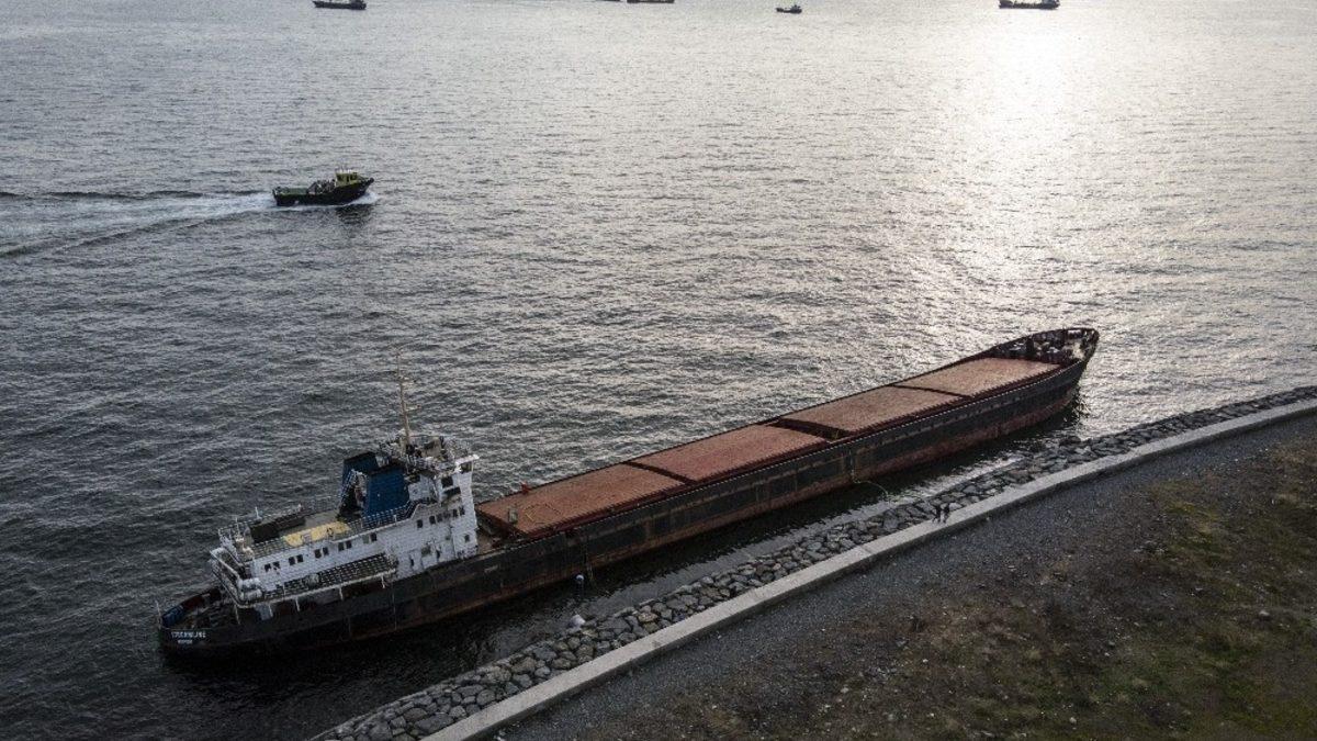 Zeytinburnu açıklarında hacizden dolayı demirli olan gemi, geçtiğimiz günlerde şiddetli fırtına nedeniyle içerisinde bulunan 2 personel ile birlikte karaya oturmuştu. İçerisinde mahsur kalan personelin kurtarıldığı geminin bekleyişi sürüyor. Halatlarla kayalara bağlanan geminin hava şartlarının düzelmesinin ardından kaldırılması bekleniyor.