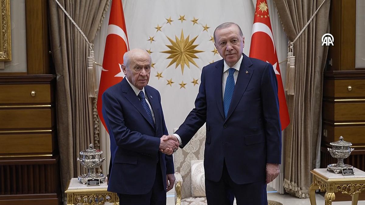 Erdoğan ile Bahçeli arasındaki görüşme saat 17.50 itibarıyla başlamıştı. İki lider arasındaki toplantı sona erdi. Toplantı 50 dakika sürdü.