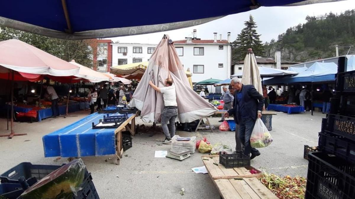 Mudurnu ilçesinde kuvvetli rüzgar ve fırtına etkili oldu. Etkili olan fırtına nedeniyle açık alanda tezgah açan esnaf, ürünlerini korumaya çalışırken zor anlar yaşadı. Fırtınaya hazırlıksız yakalanan vatandaşlar ise kapalı alanlara sığınarak fırtınadan korunmaya çalıştı. Birçok pazarcı ürünlerinin zarar görmemesi için fırtınaya karşı önlem almaya çalıştı. Kuvvetli rüzgar ve fırtına nedeniyle vatandaşlar zor anlar yaşadı.