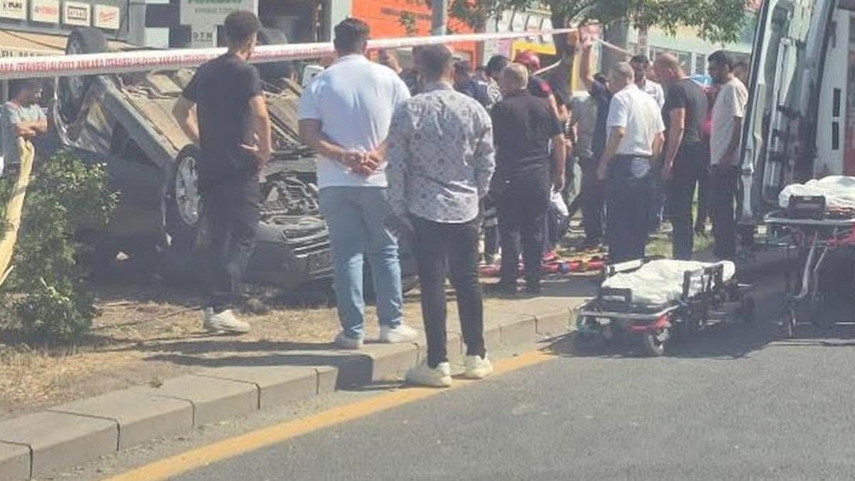 Ankara'da kontrolden çıkan otomobil refüje devrildi