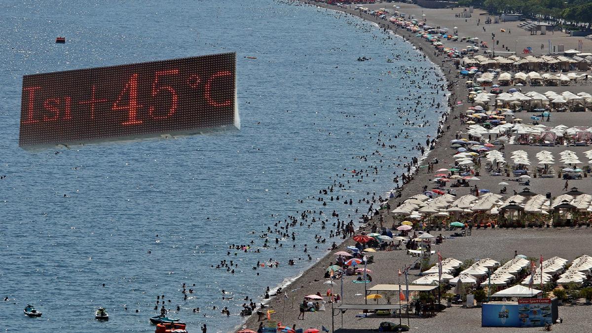 Turizm kenti Antalya adeta sıcaktan kavruluyor. Kentte termometreler öğle saatlerinde 45 dereceye kadar çıkarken, alev esen rüzgarla birlikte sokaklarda in cin top oynuyor.