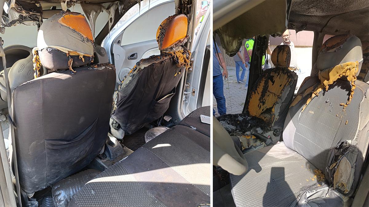 Araçta unutulan cep telefonu patladı, otomobil alev aldı