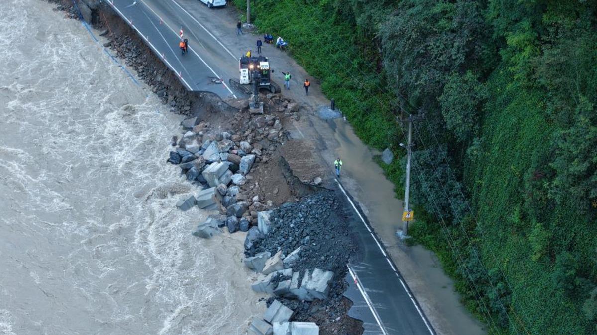 Rize merkezde yapımı devam eden Şehir Hastanesi’nin dolgusunda kullanılan beton bloklardan bölgeye getirilerek dere doldurulmaya başlandı. Çöken yol, yapılan çalışmanın ardından tek taraflı ve kontrollü olarak trafiğe açıldı. Yolun tamamen trafiğe açılması için bölgede çalışmalar devam ediyor.