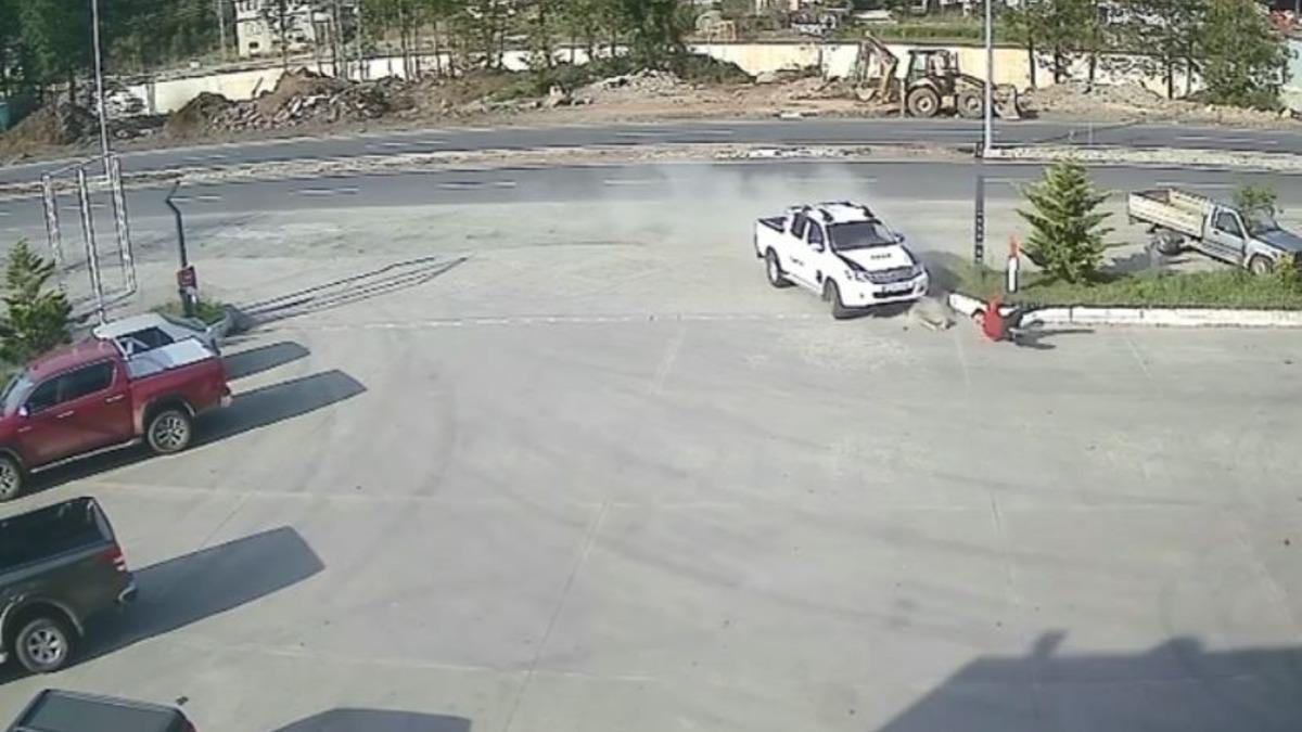 O anlar güvenlik kamerasına saniye saniye yansıdı. Görüntülerde, Yüksel Gaz’ın istasyon önünde beklediği sırada üzerine gelen aracın çarpması ve çarpmanın etkisiyle savrulması yer alıyor.