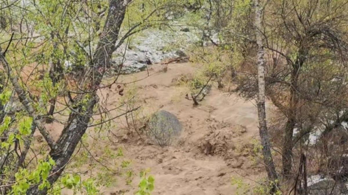 Tunceli’de etkili olan sağanak ve dolu sonrasında Munzur Vadisi’nde sel meydana geldi. Dağlardan inen sel suları, cep telefonu kamerasıyla kaydedildi.