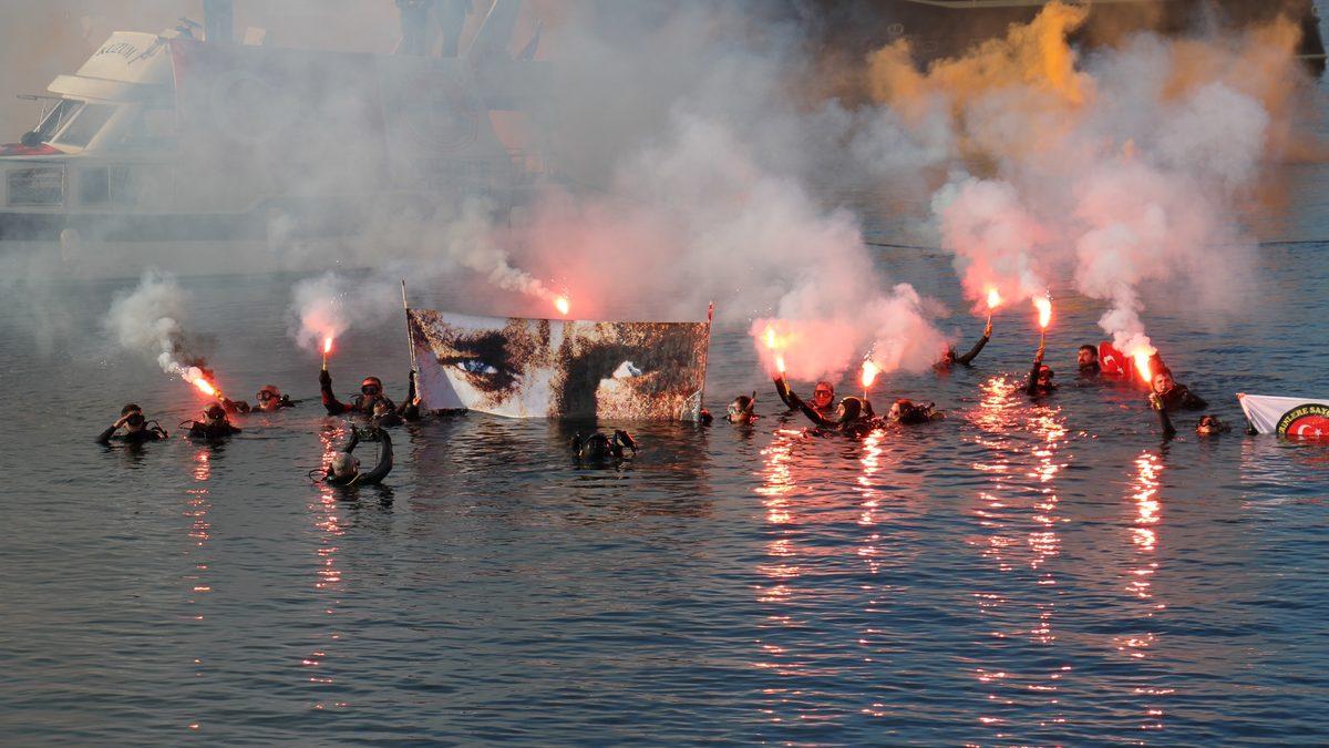 Dalış yapan oğlunu izlemek ve Atatürk’ü anmak için etkinliğe katılan Fatma Karadağ, “Onun öldüğü sene benim doğduğum sene. Onunla yaşıyorum” dedi.