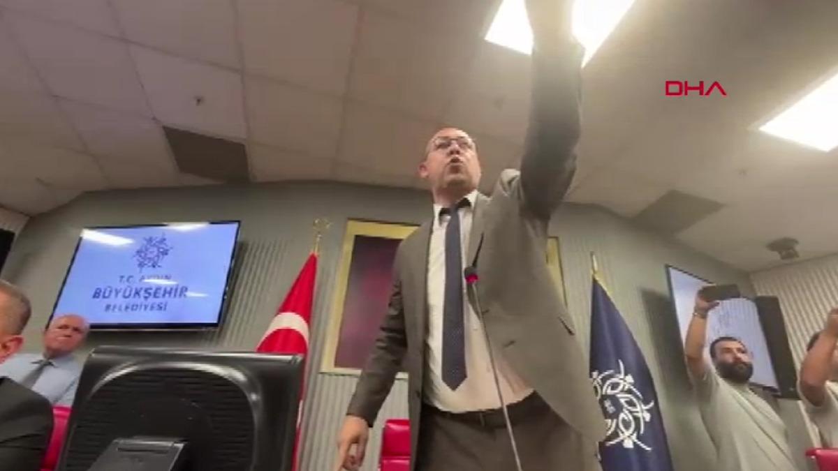 Toplantıya başkanlık yapması beklenen, CHP'den istifa ederek AK Parti'ye katılan Aydın Büyükşehir Belediye Başkanı Özlem Çerçioğlu ise toplantıya gelmedi. Onun yerine Aydın Büyükşehir Belediye Başkanvekili Polat Bora Mersin toplantıya başkanlık yaptı. Salonda meclisi takip etmek isteyen CHP’li üyeler ile AK Parti’li üyeler karşı karşıya geldi. Tıklım tıklım dolu salonda karşılıklı sloganlar atıldı. CHP'li bir üyenin meclise başkanlık eden Mersin’e kalem fırlatmasıyla gerginlik tırmandı. Başkan Mersin, toplantıyı 16 Eylül saat 18.00’e erteledi.