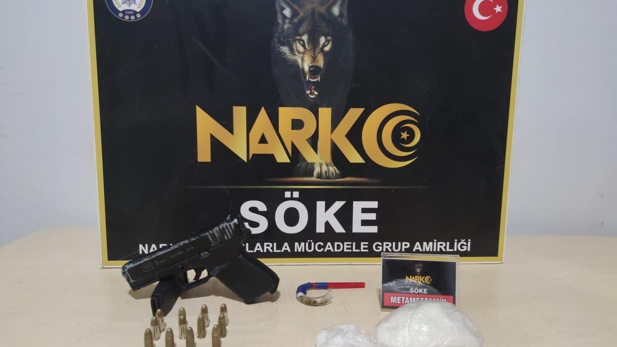 Aramalarda 245 gram sentetik uyuşturucu, 1 ruhsatsız tabanca, 12 fişek ele geçirildi.