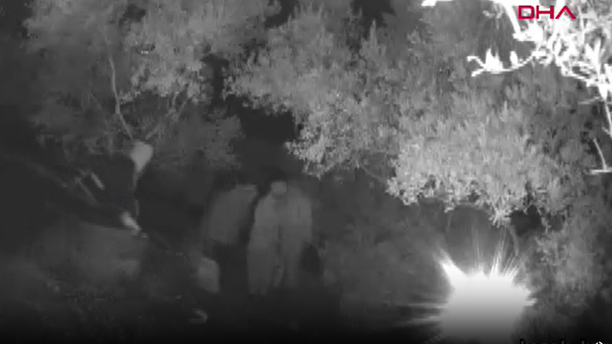 Şüphelilerin kaçak kazı yaptığı anlar bir evin güvenlik kamerasına yansıdı.