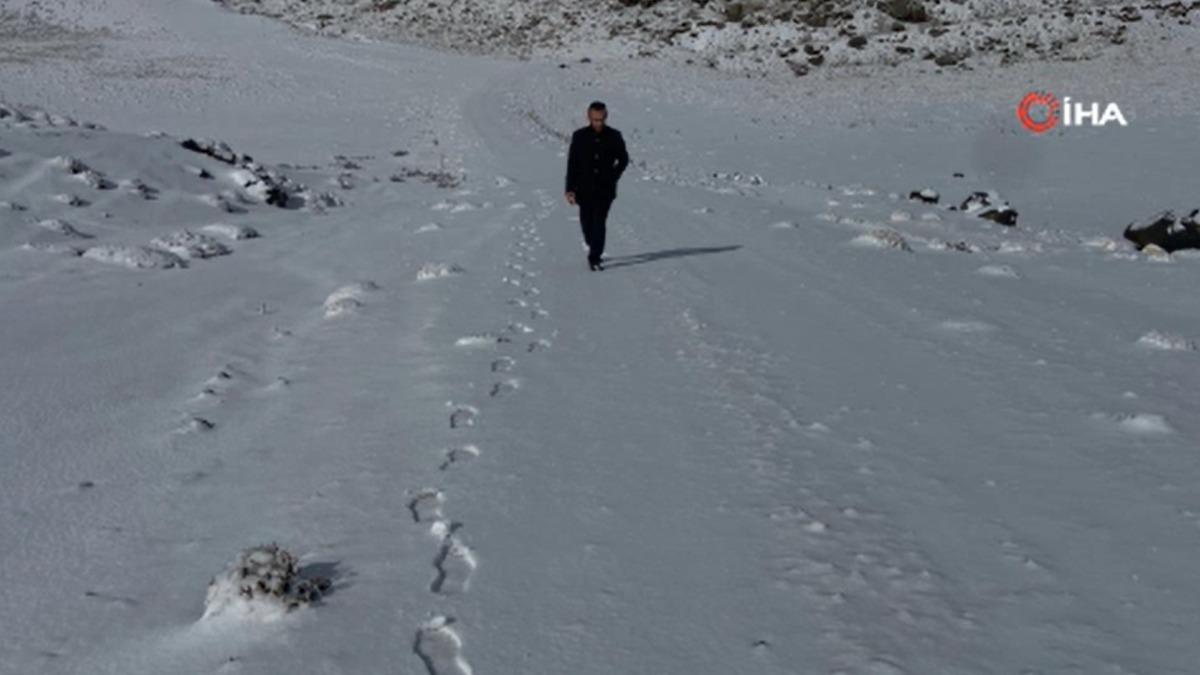 Bitlis'in Adilcevaz ilçesine bağlı Aydınlar beldesinin yüksek mahalleleri yağan karla beyaza büründü.
