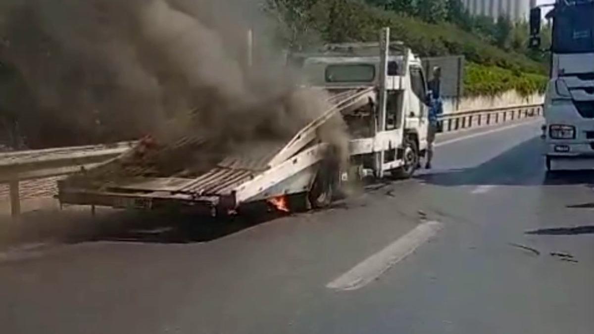 Sürücülerin hızlı müdahalesin sonuç verdi ve yangın itfaiye ekipleri olay yerine ulaşmadan kontrol altına alınarak söndürüldü. O anlar, bir vatandaş tarafından cep telefonu kamerasıyla saniye saniye kaydedildi.
