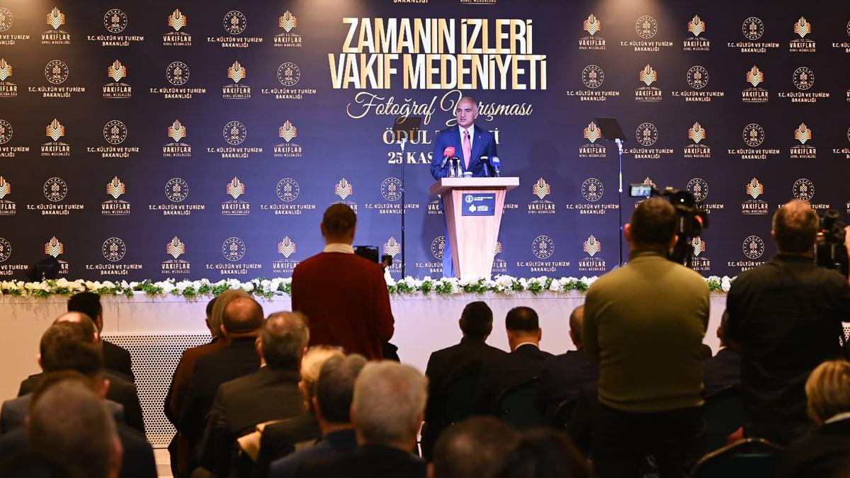 Kültür ve Turizm Bakanı Mehmet Nuri Ersoy, vakıf geleneğinin izlerini günümüzün fotoğraf sanatçılarıyla buluşturan "Zamanın İzleri-Vakıf Medeniyeti Fotoğraf Yarışması"nın ödül törenine katıldı. Vakıf kültürünün asırlık mirasını çağdaş bir bakışla yeniden görünür kıldığını belirten Ersoy, törende yaptığı konuşmada, vakıf kültürünün asırlardır toplumsal dayanışmayı, iyiliği ve insanı merkeze alan bir medeniyet anlayışını yaşattığını kaydetti.
