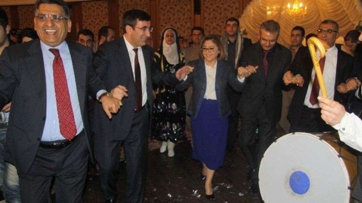 Bakan Yılmaz, düğün töreninde çiftin yakınları tarafından büyük ilgi görürken, Diyarbakır'dan gelen folklor ekibi sergilediği yöresel oyunlarıyla büyük beğeni topladı. Daha sonra düğün sahipleri, Bakan Yılmaz ve Fatma Şahin'i oyun oynamak için sahneye davet etti. Kürtçe oyun havaları eşliğinde halay çeken Yılmaz ve Şahin'in üzerine davetlilere tarafından dolar atıldı. Atılan dolarları toplayan çocuklar izdihama neden olurken, Bakan Cevdet Yılmaz ve Başkan şahin dakikalarca oyun oynadı. Düğün töreni daha sonra sanatçı Rojda'nın sahne alması ile son buldu.